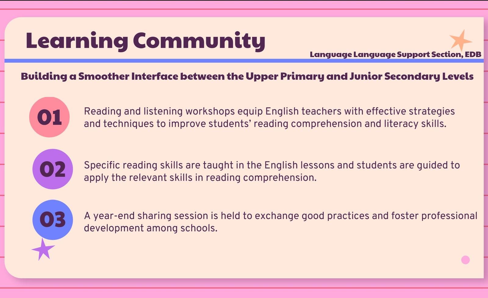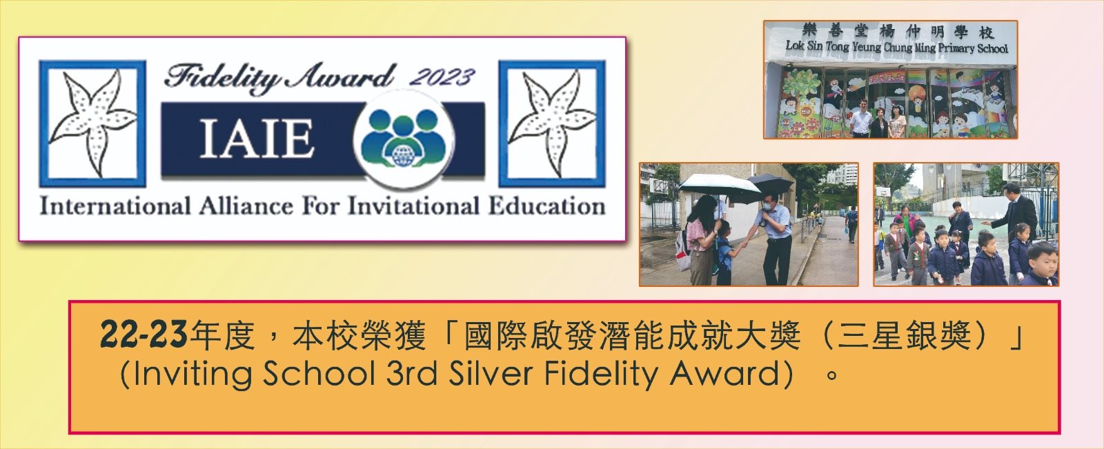 Inviting School 3rd Silver Fidelity Award 「國際啟發潛能成就大獎(三星銀獎)」P.3-P.4 School-based Support Services 2022-2024P.4-P.6 Shared Reading ProgrammeP.4-P.6 Speaking ProgrammeP.1-P.6 Home Reading Award SchemeP.1-P.2 After-School Care English Programmes